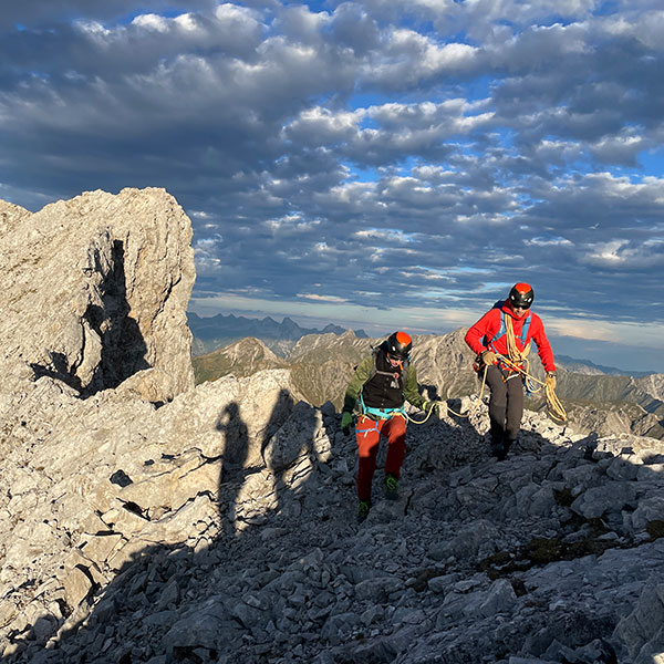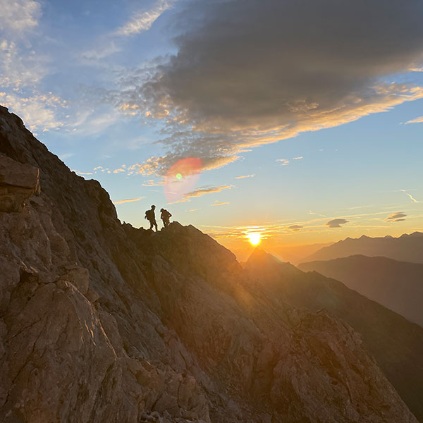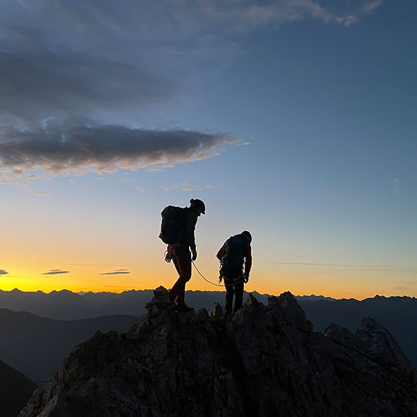 Um 04:00 Uhr morgens starten wir an unserem Ausgangspunkt, dem Hahntennjoch. Zuerst wandern wir bis zum Steinjöchel und weiter zum Maldongrat, ab hier geht es so richtig los. Von nun an wird die Kletterei immer mehr und mehr. Wir steigen und klettern über zahlreiche kleine Felstürme, Zacken & Gipfel, den ganzen Tag am ausgesetzten Grat. Nachdem der letzte Gipfel, erreicht wurde, geht es über Schrofengelände hinunter bis zur Heiterwand Hütte. Von dort müssen wir nun noch den Abstieg bis nach Tarrenz bewältigen. Von dort fahren wir mit dem Taxi zurück zu unserem Ausgangspunkt.